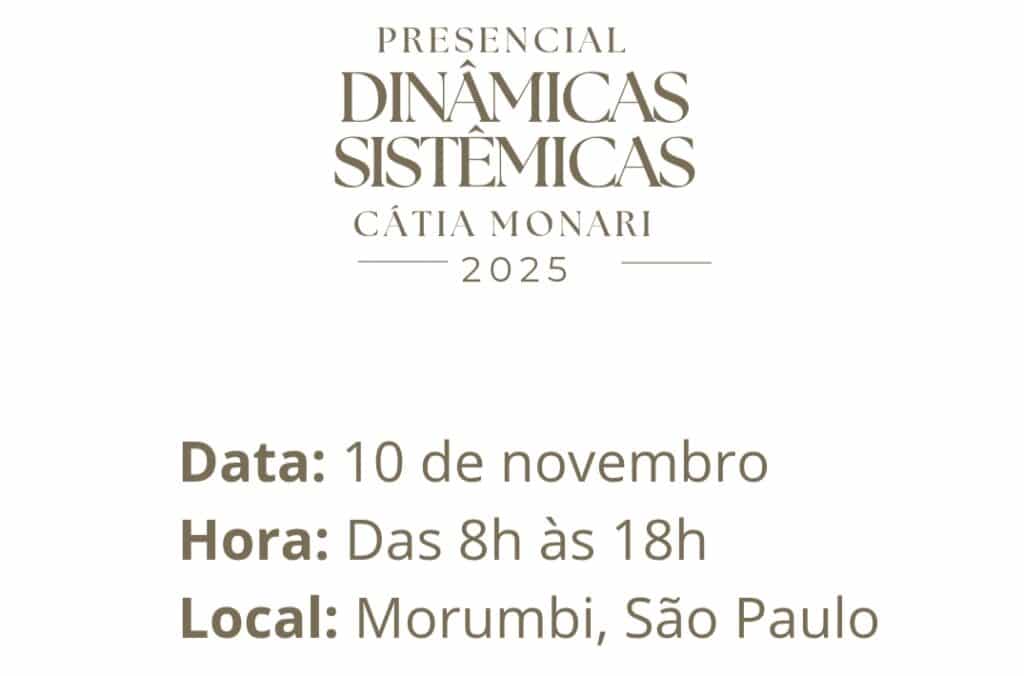 Você também será inspirada por 9 histórias de transformação impressas no livro Jornadas Sistêmicas, cujas autoras saíram da estagnação, baixa autoestima, insegurança a uma vida fluida e com propósito, com a guia da Cátia Monari, e será lançado durante esta imersão!
