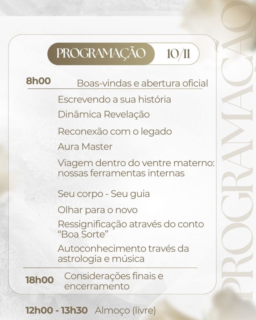 Uma imersão com técnicas sistêmicas associadas a vivencias que despertam o corpo, mente e a alma e une autocuidado, conexão e renovação.