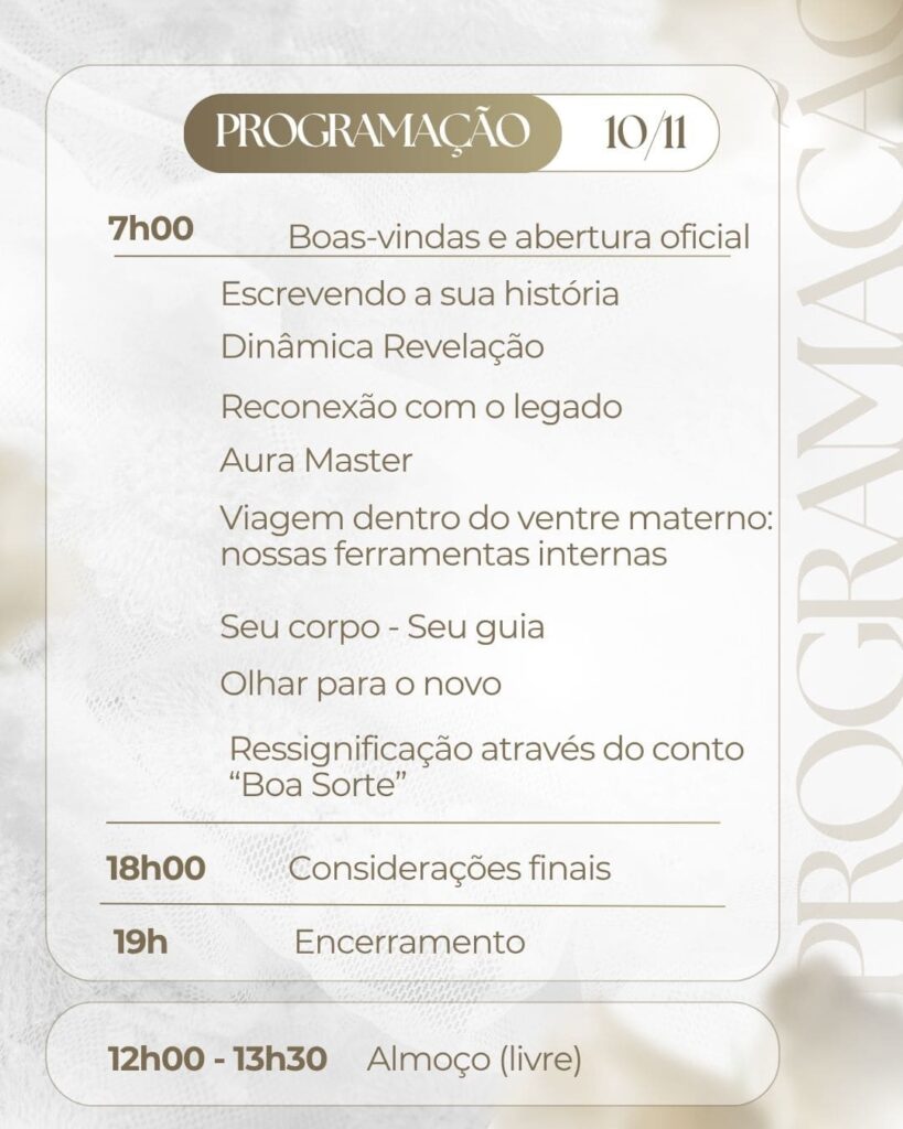 Uma imersão com tecnicas sistêmicas associadas a vivencias que despertam o corpo, mente e a alma e une autocuidado, conexão e renovação.